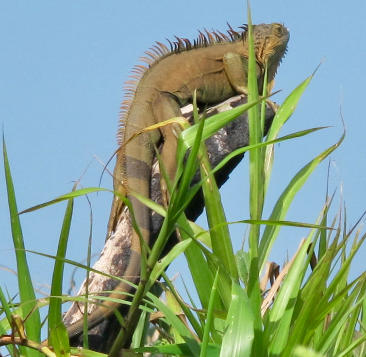 Here’s a handful. The American crocodile and caiman, tapir, tayra, and anteater, otter and sloth; the spider monkey, howler and white-faced capuchin; the bullet ant, boa constrictor and iguana; the brightly colored poison dart frog and leaping green tree frog with red eyes; beautiful birds like the harpy eagle, red macaw and green chocoyo, toucan, hummingbird and oropéndola; the manatee and the tarpon, an enormous tropical river fish that grows as big as us; bottlenose dolphins, lemon-eye sharks and hammer-heads.